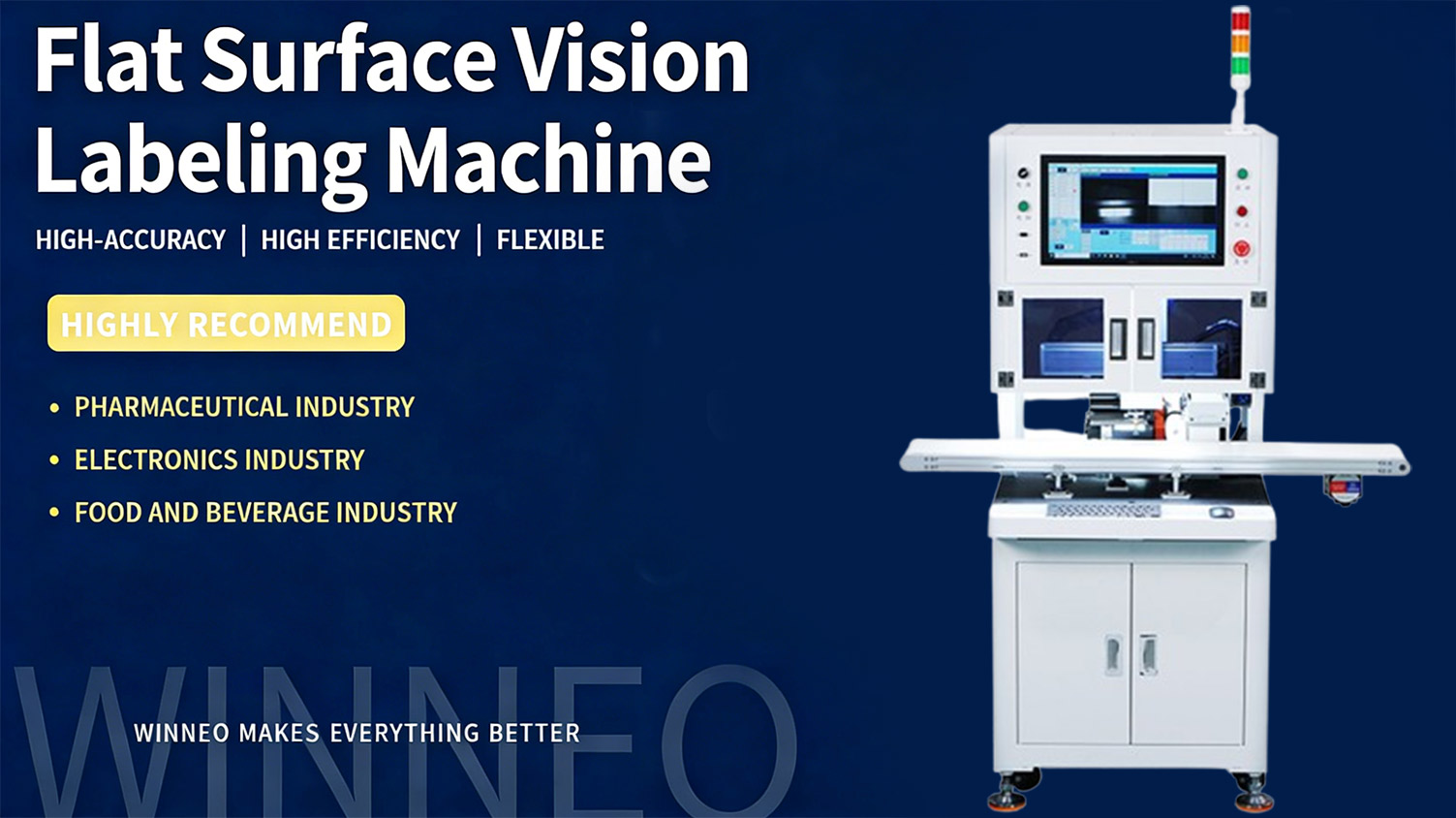Suitable for flat labeling of various high-precision products, such as circuit boards, precision spare parts for mobile phones and watches, and high-end toys. The front ends of the products can be casually positioned. While discarding the traditional fixture-positioned labeling, it is equipped with a visual alignment calibration system to ensure the fulfillment of high-precision labeling requirements.