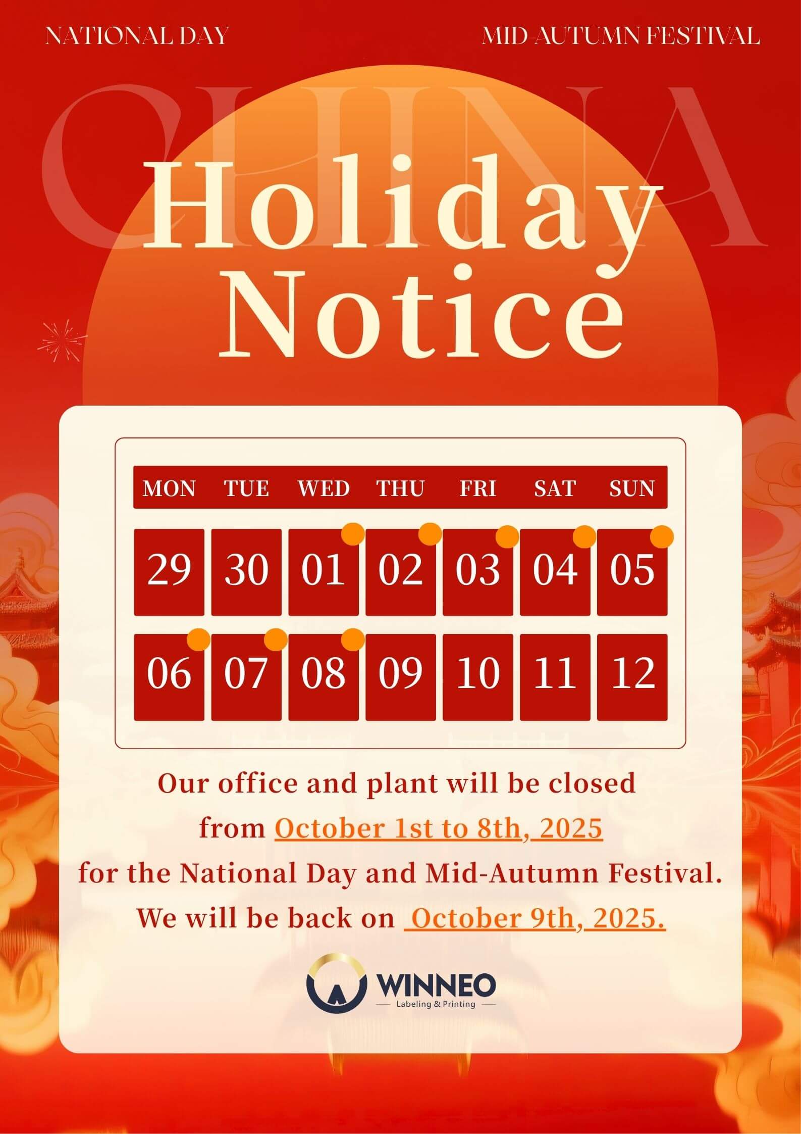 يرجى العلم بأن مكتبنا سيكون مغلقًا بمناسبة مهرجان منتصف الخريف واليوم الوطني من من 1 إلى 8 أكتوبر 2025واستأنف العمل على 9 أكتوبر 2025.
