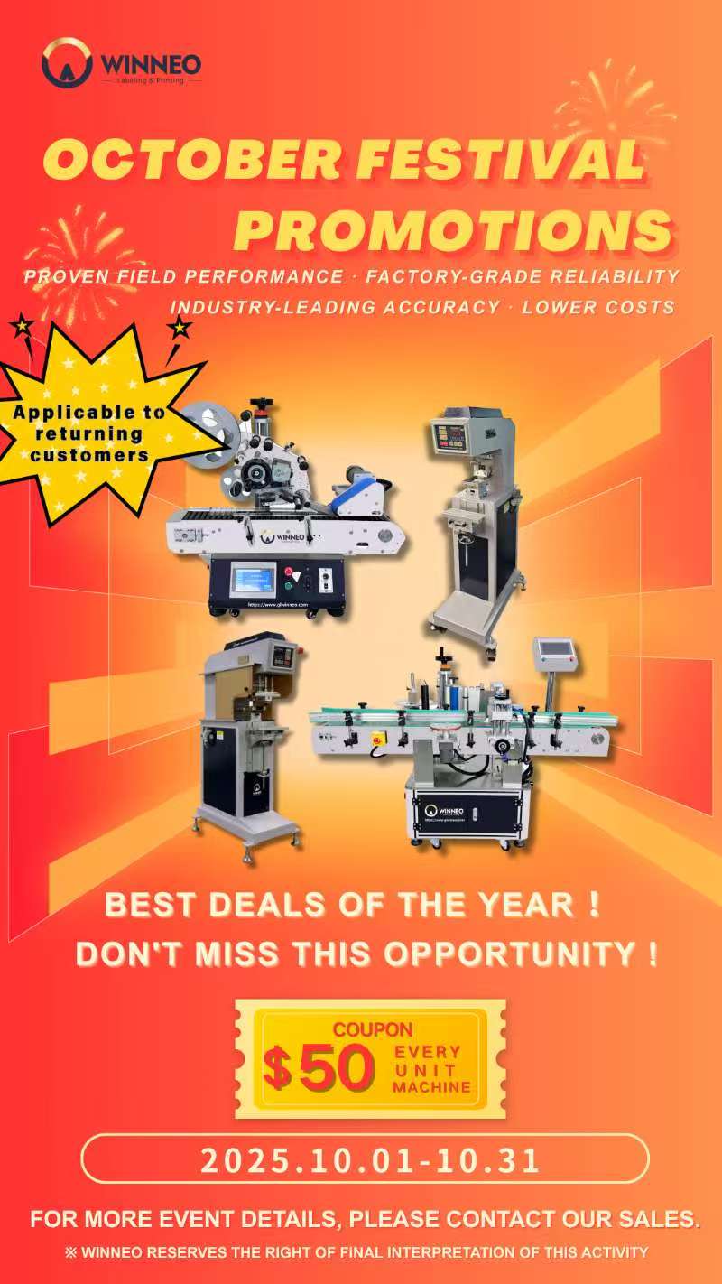 1-31 أكتوبر 2025 – أعلنت شركة Winneo عن عروض شهر أكتوبر للمشترين الدوليين لطباعة ولصق الملصقات عالية الدقة. صُمم هذا العرض الترويجي لدعم الإنتاج على نطاق واسع وخفض تكاليف الشراء الإجمالية.