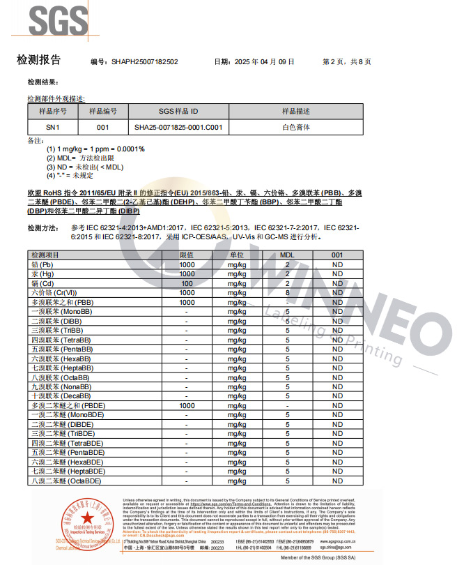 هذا هو تقرير اختبار التركيب الأصلي للمواد الخام المستخدمة في وسادات طباعة WINNEO. يُثبت هذا التقرير أن المواد الخام المستخدمة في وسادات طباعة WINNEO تُلبي معايير الجودة. تضمن المواد الخام المؤهلة امتثال تصنيع الوسادات اللاحق للمعايير ذات الصلة.