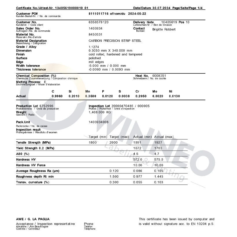 هذا هو تقرير اختبار التركيب الأصلي للمواد الخام المستخدمة في ألواح طباعة الوسادة من WINNEO. يُثبت هذا التقرير أن المواد الخام المستخدمة في ألواح طباعة الوسادة لدينا تُلبي معايير الجودة. تضمن المواد الخام المؤهلة امتثال تصنيع ألواح الفولاذ اللاحقة للمعايير ذات الصلة.