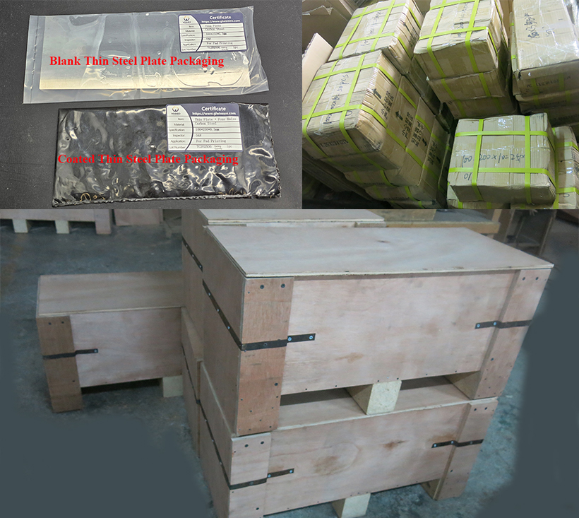 تُعبأ ألواح WINNEO الفولاذية للطباعة بالوسادة في غلاف داخلي بلاستيكي، وصندوق من الورق المقوى، وصندوق خشبي مُقوّى. يضمن هذا التغليف الثلاثي ثبات المنتج، مما يُجنّبك القلق بشأن التلف أثناء النقل. تُسهّل ملصقات WINNEO الشفافة التحقق من معلومات الطلب بسرعة.