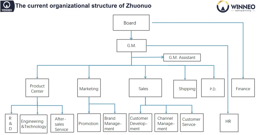 الهيكل التنظيمي لشركة Zhuonuo هو كما يلي: