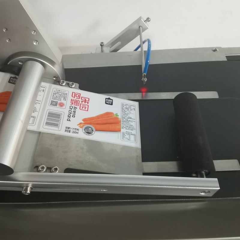 ال آلة وضع العلامات أوتوماتيكية تُستخدم على نطاق واسع في وضع العلامات المسطحة على المنتجات الكبيرة والأشياء المسطحة ذات نطاق المواصفات الواسع. يمكنك إضافة مُرمِّز أو طابعة نافثة للحبر إلى رأس وضع العلامات لطباعة معلومات مثل تاريخ الإنتاج ورقم الدفعة والرمز الشريطي على الملصق. كما يمكنك إضافة طابعة نافثة للحبر إلى سير النقل لطباعة معلومات مثل تاريخ الإنتاج ورقم الدفعة والرمز الشريطي على المنتج قبل وضع العلامات أو بعدها.
